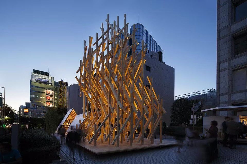 Az ősi japán kézműves faművészeti technikát reinterpretáló épület a Kenzo Tange által tervezett United Nations University főépülete előtt áll, válaszként (vagy kihívásként?) Tange vasbeton-üveg-fém anyaghasználatára. Kuma tudatosan szeretné visszahozni a 21. századi kortárs építészeti diskurzusba az emberiség legősibb építőanyagát, a fát