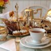 Exkluzív vintage stílusú, ezüstözött angol porcelán szett