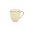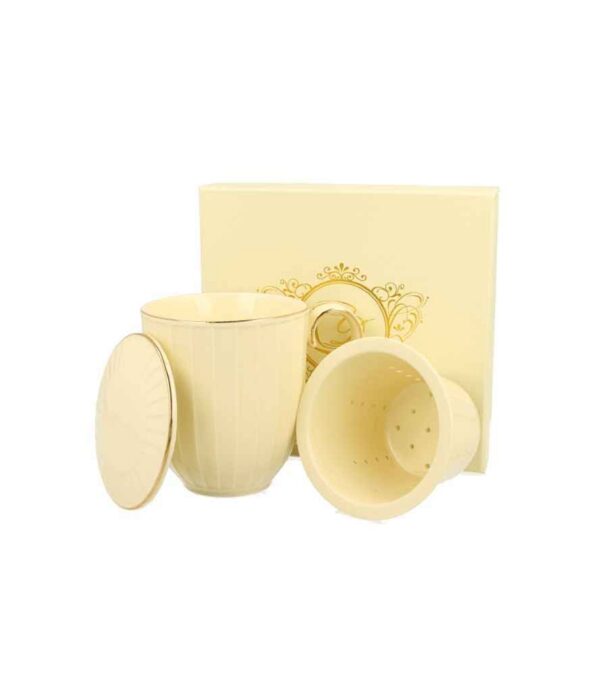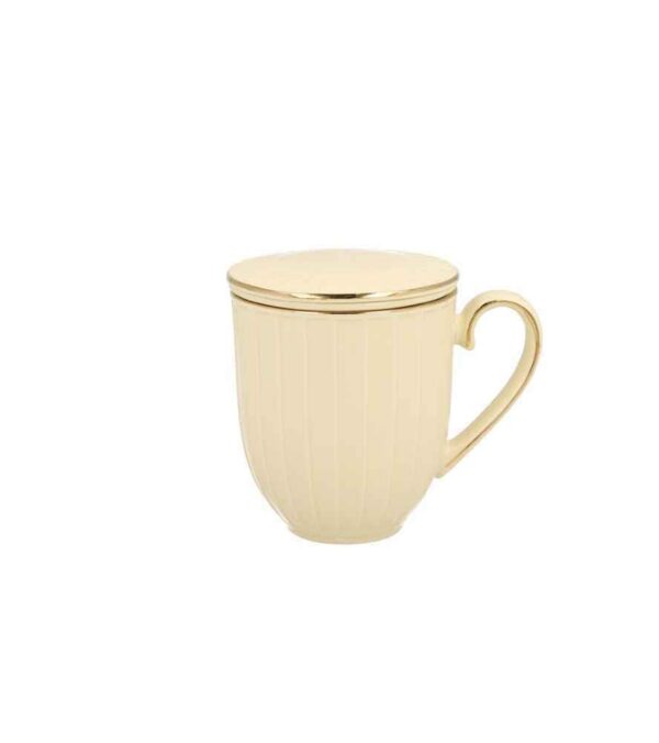 Ekrü porcelán bögre porcelán szűrővel és tetővel – aranyozott, hosszanti csíkos domború mintázattal