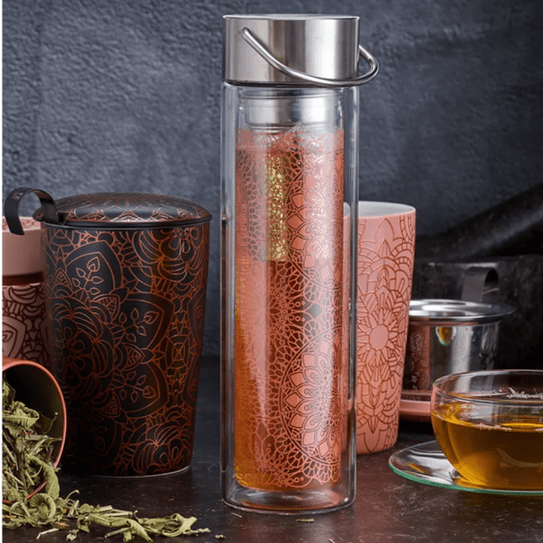 Hordozható elegáns üveg teás kulacs beépített szűrővel