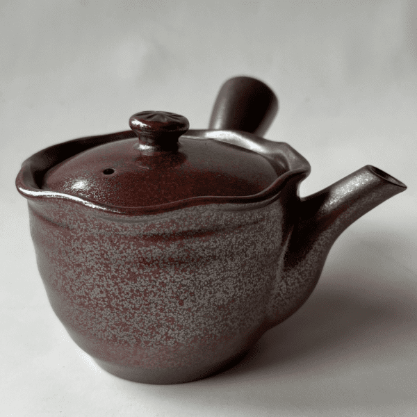A “Fénylő csillag” kyusu egy hagyományos japán oldalsó fogantyús teáskanna, amely Honshu szigetén készült, magas hőfokon égetett kerámiából. A finoman megmunkált felület és a sötét, csillogó máz a japán éjszakai égbolt ragyogását idézi.