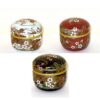 A „Virágözön” japán natsume egy elegáns, aranyozott teatartó doboz, amely nemcsak praktikus, hanem esztétikai értéke is kiemelkedő. Fém alapú, lakkozott felülete és belső műanyag védőfedele biztosítja a tea frissességét, megóvva annak aromáját és ízét. A doboz vörös, fehér és fekete színkombinációjában kapható, amely a japán esztétika finom harmóniáját tükrözi. Az aranyozott díszítés a virágözön motívumot idézi, amely a természet szépségére és gazdagságára utal.