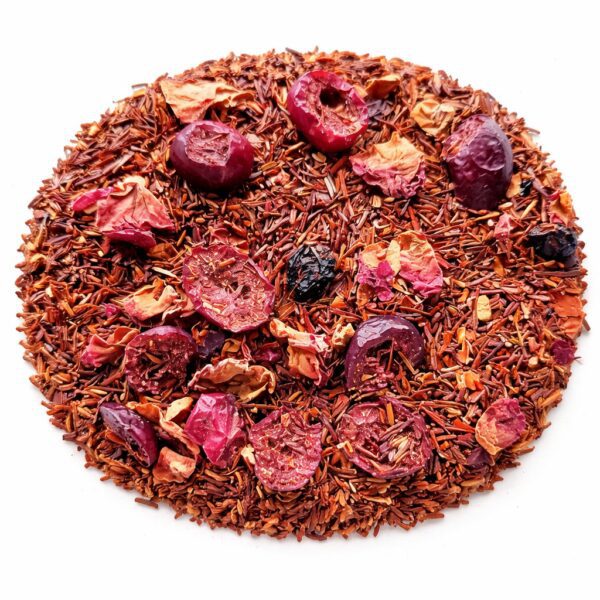 Szigorúan eredetvédett tea! Ez a teakeverékünk az egyik legkedveltebb, igazi sláger tea. Alapja az Aspalathus linearis növény, amely endémikus a Cederberg hegységben. Látvány és esztétika szempontjából is rendkívül kellemes, ahogy a vöröslő szárított tőzegáfonya (cranberry) darabok és püspöklila rózsabimbó ülnek rooibos alapon. A rafinált keverék illatolva, kóstolva mindenki azonnali kedvence lesz.