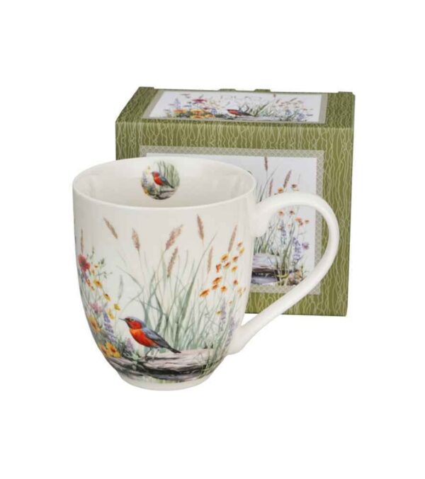 Finoman kidolgozott porcelán csésze, amely egy virágzó rét nyugalmát hozza a mindennapi teázásba. A részletgazdag növényi motívumok és a vörösbegy ábrázolása természetközeli, lágy hangulatot teremt – ideális választás herbákhoz, gyógyteákhoz és virágos teakeverékekhez.